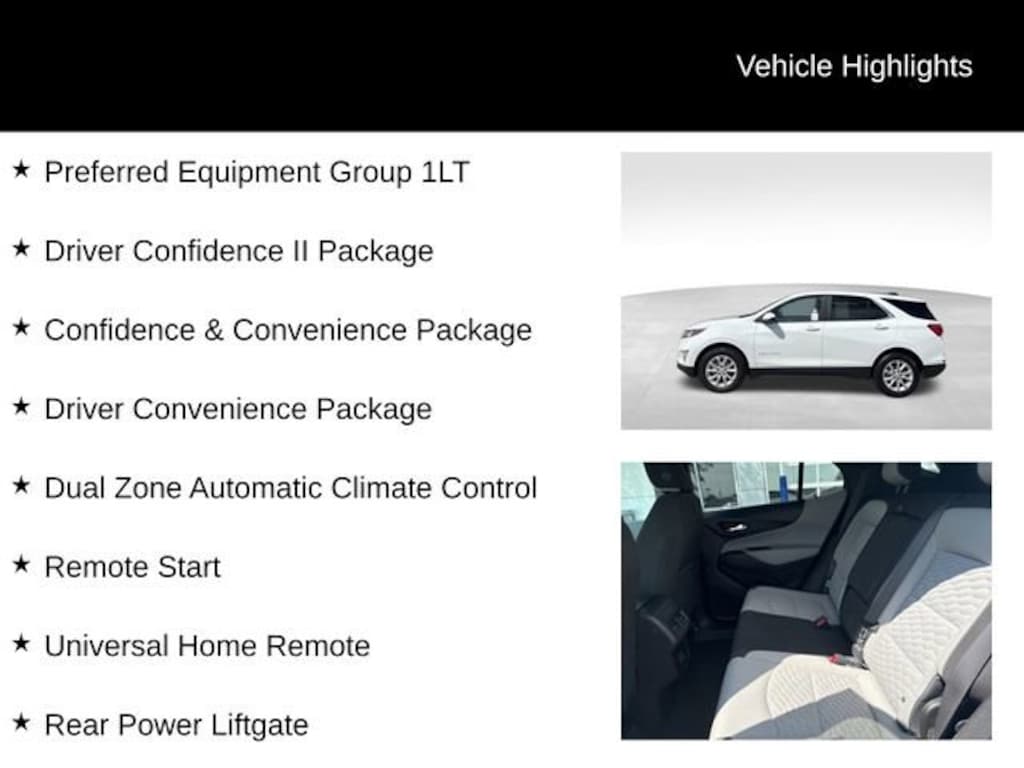 Certified.Summit White LT AWD 1.5L DOHC3-Spoke Leather-Wrapped Steering Wheel, Confidence & Convenience Package, Driver Confidence II Package, Driver Convenience Package, Dual Zone Automatic Climate Control, Front Fog Lamps, Heated Driver & Front Passenger Seats, Lane Change Alert w/Side Blind Zone Alert, Preferred Equipment Group 1LT, Rear Cross Traffic Alert, Rear Park Assist w/Audible Warning, Rear Power Liftgate, Remote Start, Universal Home Remote.Here at Karl Chevrolet of Stuart we want to help you find the best vehicle to suit your needs. With our huge selection of new and pre-owned vehicles, we're sure to have the right car for you! We pride ourselves on creating a friendly buying experience and earning the title of Your Dealer for Life. Give us a call at 515.523.1201 and speak to our experts to find out just how easy it is to get the vehicle of your dreams!*Equipment and options are generated by a 3rd party vendor, exact vehicle options may vary. Please see a salesperson for complete details and vehicle information.Clean CARFAX. CARFAX One-Owner. 25/30 City/Highway MPGCertification Program Details: Karl Chevrolet of Stuart, your newest CarBravo dealer, where platinum quality vehicles and unmatched benefits come together! -Comprehensive Limited Bumper to Bumper Warranty. -24/7 Roadside Assistance: -Multi-Point Vehicle Inspection: Every vehicle undergoes a Platinum Quality Certified Inspection known throughout the industry to ensure top quality. -Vehicle Exchange Program. Within 10-Days and 500 miles -Complimentary Vehicle History Report -Nationwide Dealer Network Support: Enjoy the backing of the extensive CarBravo and GM dealership network. -OnStar and SiriusXM Trials: Enjoy connected services and entertainment with included trial subscriptions. -Terms and conditions may apply. With every vehicle purchased, you'll enjoy the peace of mind that comes with a limited warranty, 24/7 roadside assistance, and a comprehensive vehicle inspection.Awards:* 2021 IIHS Top Safety Pick with specific headlights