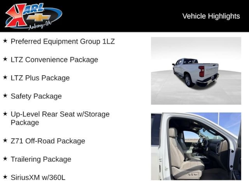 Discover the unparalleled capability and refined comfort of this 2021 Chevrolet Silverado 1500 LTZ 4WD Crew Cab. Boasting a powerful EcoTec3 5.3L V8 engine and 4-wheel drive, this truck is ready to conquer any terrain. The Z71 Off-Road Package enhances its off-road prowess with features like skid plates, hill descent control, and all-terrain tires. Inside, you'll find premium amenities like heated and ventilated front seats, a heated steering wheel, and a premium audio system with wireless smartphone integration. With its spacious crew cab design and generous cargo bed, this Silverado is the perfect companion for your next adventure or worksite.
