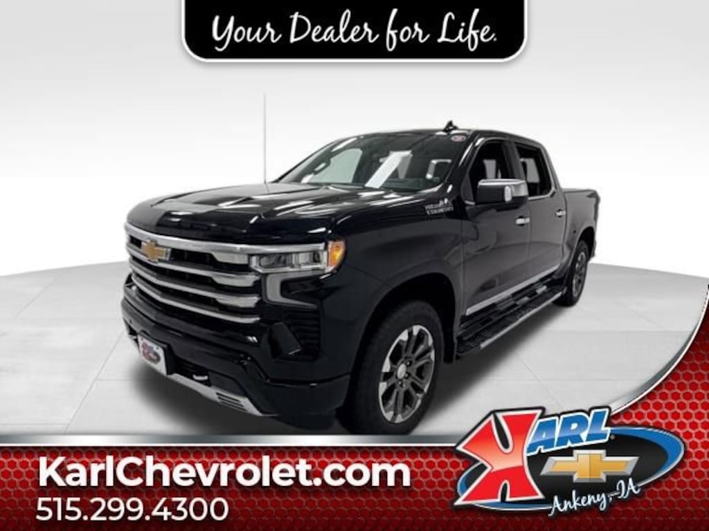 Certification Program Details: Karl Chevrolet of Ankeny, The Nation's #1 CarBravo Certified Dealer! Every CarBravo Certified vehicle includes: Comprehensive 126-Point Inspection Professionally inspected by factory-trained technicians to meet strict mechanical, safety, and cosmetic standards. 12-Month / 12,000-Mile Bumper-to-Bumper Limited Warranty Enjoy added peace of mind with extensive coverage from the day you drive off the lot. 24/7 Roadside Assistance & Courtesy Transportation Flat tire? Dead battery? Need a tow? You're covered anywhere, anytime throughout the warranty period. Vehicle History & Title Guarantee Clean title, completed safety recalls, and a full CARFAX® or AutoCheck® report provided for complete transparency. 10-Day / 500-Mile Exchange Promise If you don't absolutely love it, bring it back and exchange it no hassle, no stress. Experience peace of mind and premium protection exclusively from Karl Chevrolet of Ankeny, the Nation's #1 CarBravo Dealer!- TECHNOLOGY PACKAGE- High Capacity Suspension Package- Preferred Equipment Group 3LZ- Trailering Package- Up-Level Rear Seat w/Storage PackageThis stunning 2024 Chevrolet Silverado 1500 High Country 4WD CREW CAB 147 HI is equipped with an impressive EcoTec3 5.3L V8 engine and a smooth-shifting 10-Speed Automatic transmission, delivering a powerful and efficient driving experience. With its sleek Black exterior and an array of premium features, this truck is the perfect blend of style and capability.Designed to handle your toughest tasks with ease, the Silverado High Country offers a suite of advanced technology features that will elevate your driving experience. Enjoy the convenience of the 15 Diagonal Head-Up Display, the premium Bose 7-Speaker Sound System, and the seamless integration of SiriusXM with 360L. Stay connected and entertained on the go.This vehicle's exceptional attention to detail is evident in its thoughtful design and premium materials. From the heated and ventilated front seats to the power sliding rear window, every element has been carefully crafted to provide you with unparalleled comfort and convenience. The Chevytec Spray-On Black Bedliner and the 120-Volt Bed Mounted Power Outlet further enhance the Silverado's versatility, making it the ultimate partner for your active lifestyle.Certified by Karl Chevrolet's industry-leading CarBravo program, this Silverado High Country has undergone a rigorous 126-point inspection and comes with a 12-month/12,000-mile bumper-to-bumper limited warranty, 24/7 roadside assistance, and a vehicle history guarantee. Experience the peace of mind that comes with owning a truly exceptional vehicle.At Karl Chevrolet we want to help you find the best new or used car in Ankeny that suits your needs. When you buy a new car at Karl Chevrolet you know you're finding a vehicle you can rely on. We have a great selection of Platinum Quality Pre-Owned Vehicles. We also pride ourselves in creating a friendly atmosphere and a reliable Dealership that you can trust. Call us and our experts will be glad to help you! (515) 299-4300. *Equipment and options are generated by a 3rd party vendor, exact vehicle options may vary. Please see a salesperson for complete details and vehicle information.