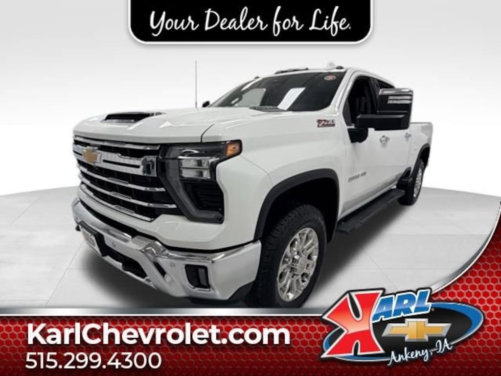 Recent Arrival! CARFAX Sold New at Karls. Equipped With Running Boards & Bed Liner! Clean CARFAX. Certified. Summit White 2024 Chevrolet Silverado 2500HD LTZ 4WD CREW CAB 159 LT 6.6L V8 10-Speed Automatic, 4WD, Jet Black Leather, 120-Volt Bed Mounted Power Outlet, 120-Volt Interior Power Outlet, 15 Diagonal Multicolor Head-Up Display, 170 Amp Alternator, 1st & 2nd Row All-Weather Floor Liners (LPO) (AAK), 2 Charge/Data USB Ports Inside Center Console, 220 Amp Alternator, 5th Wheel & Gooseneck Trailer Wiring Provisions, 6-Speaker Audio System, Adaptive Cruise Control, Apple CarPlay/Android Auto, Auto High-beam Headlights, Auto-Dimming Inside Rear-View Mirror, Bed View Camera w/2 Trailer Camera Provisions, Bluetooth® For Phone, BOSE Premium 7-Speaker Sound System, Chevrolet Connected Access Capable, Chrome Door Handles, Chrome Mirror Caps, Color-Keyed Carpeting Floor Covering, Compass, Deep-Tinted Glass, Electric Rear-Window Defogger, Electronic Cruise Control w/Set & Resume Speed, EZ Lift Power Lock & Release Tailgate, Floor-Mounted Center Console, Front Bucket Seats, Front dual zone A/C, Front LED Fog Lamps, Front Rain-Sensing Wipers, Front Rubberized Vinyl Floor Mats, HD Rear Vision Camera, HD Surround Vision, Heated 2nd Row Outboard Seats, Heated Driver & Front Outboard Passenger Seating, Heated Steering Wheel, Hill Descent Control, Hitch Guidance w/Hitch View, In-Vehicle Trailering App System, Keyless Open & Start, LED Cargo Area Lighting, LED Smoked Amber Roof Marker Lamps, LED Taillamps w/Fixed Signature, LTZ Convenience Package, LTZ Convenience Package II, LTZ Premium Package, Manual Tilt & Telescoping Steering Column, Memory seat, Off-Road Suspension, OnStar & Chevrolet Connected Services Capable, Power Door Locks, Power Front Windows w/Driver Express Up/Down, Power Front Windows w/Passenger Express Up/Down, Power Rear Windows w/Express Down, Power Sliding Rear Window w/Defogger, Preferred Equipment Group 1LZ, Push Button Start, Rear Camera Mirror, Rear Cross Traffic Alert, Rear Rubberized Vinyl Floor Mats, Rear Wheelhouse Liners, Remote Vehicle Starter System, Safety Alert Seat, Safety Package, SiriusXM w/360L, Snow Plow Prep/Camper Package, Standard Tailgate, Steering Wheel Audio Controls, Suspension Package, Technology Package, Trailer Camera Provisions, Trailer Side Blind Zone Alert, Ultrasonic Front & Rear Park Assist, Unauthorized Entry Theft-Deterrent System, Universal Home Remote, Up-Level Rear Seat w/Storage Package, Ventilated Driver & Front Passenger Seats, Wheels: 20 12-Spoke Bright Chrome (DISC), Wi-Fi Hotspot Capable, Wireless Charging, Wireless Phone Projection, Wrapped Steering Wheel, Z71 Off-Road & Protection Package, Z71 Off-Road Package. 10-Speed Automatic 4WD