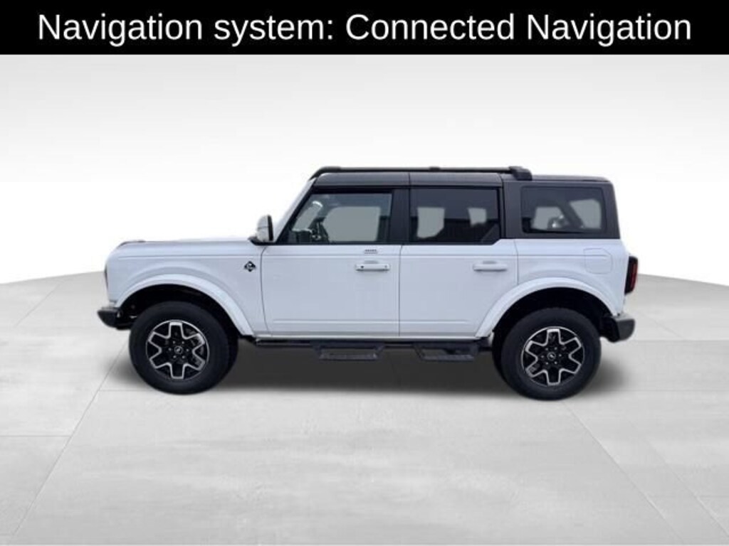 Recent Arrival! CARFAX One-Owner & Local Trade! Equipped With Running Boards! Certified. Oxford White 2023 Ford Bronco Outer Banks OUTER BANKS 4 DOOR 4 2.3L EcoBoost I-4 12 LCD Capacitive Touchscreen w/Swipe Capability, 360-Degree Camera, Additional Sound Deadening, AM/FM radio: SiriusXM with 360L, Auto High-beam Headlights, Black Roof Rails w/Crossbars, Brush Guard, Carbonized Gray Molded-In-Color Hard Top, Connected Built-In Navigation, Equipment Group 313A High Package, Exterior Parking Camera Rear, Front dual zone A/C, Front Parking Sensors, Front Row Top Panels Storage Bag, Hard Top Sound Deadening Headliner, Heated Leather-Trimmed/Vinyl Bucket Seats, Information on Demand Panel, Rear-Window Defroster & Washer, Removable Hoop Step, Sideview Mirrors, SiriusXM Radio w/360L, Slide-Out Tailgate, Towing Capability. 20/21 City/Highway MPG 10-Speed Automatic 4WD