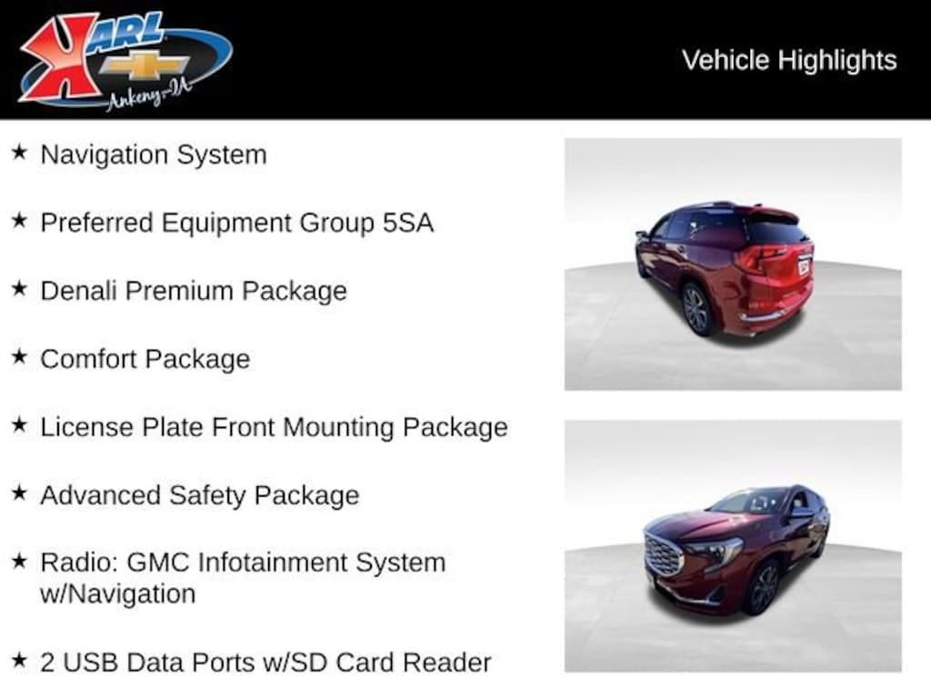 At Karl Chevrolet we want to help you find the best new or used car in Ankeny that suits your needs. Check out the 2020 GMC Terrain For Sale in Ankeny, IA. When you buy a new car at Karl Chevrolet you know you're finding a vehicle you can rely on. We have a great selection of Platinum Quality Pre-Owned Vehicles. We also pride ourselves in creating a friendly atmosphere and reliable new car dealership that you can trust. Call us with any questions about our 2020 GMC Terrain and our experts will be glad to help you! (515) 299-4300. *Equipment and options are generated by a 3rd party vendor, exact vehicle options may vary. Please see a salesperson for complete details and vehicle information.