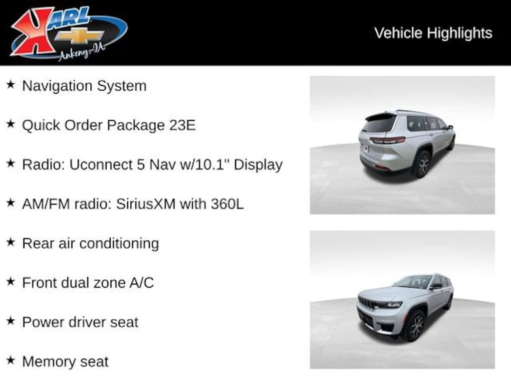 At Karl Chevrolet we want to help you find the best new or used car in Ankeny that suits your needs. When you buy a new car at Karl Chevrolet you know you're finding a vehicle you can rely on. We have a great selection of Platinum Quality Pre-Owned Vehicles. We also pride ourselves in creating a friendly atmosphere and a reliable Dealership that you can trust. Call us and our experts will be glad to help you! (515) 299-4300. *Equipment and options are generated by a 3rd party vendor, exact vehicle options may vary. Please see a salesperson for complete details and vehicle information.