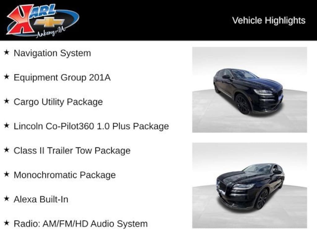 At Karl Chevrolet we want to help you find the best new or used car in Ankeny that suits your needs. Check out the 2023 Lincoln Nautilus For Sale in Ankeny, IA. When you buy a new car at Karl Chevrolet you know you're finding a vehicle you can rely on. We have a great selection of Platinum Quality Pre-Owned Vehicles. We also pride ourselves in creating a friendly atmosphere and reliable new car dealership that you can trust. Call us with any questions about our 2023 Lincoln Nautilus and our experts will be glad to help you! (515) 299-4300. *Equipment and options are generated by a 3rd party vendor, exact vehicle options may vary. Please see a salesperson for complete details and vehicle information.