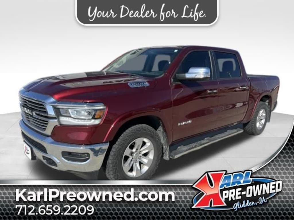 Recent Arrival! Delmonico Red Pearlcoat 2020 Ram 4D Crew Cab 1500 Laramie HEMI 5.7L V8 Multi Displacement VVT 15/21 City/Highway MPG 8-Speed Automatic 4WD