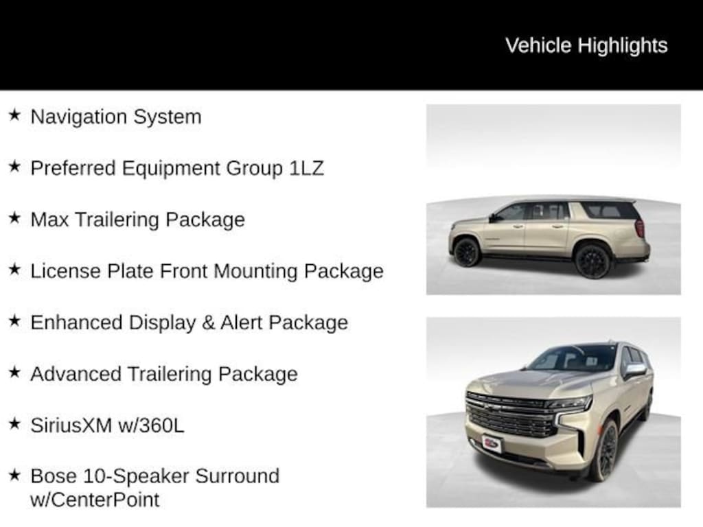 12-Way Power Driver & Passenger Seat Adjusters, 15 Diagonal Multi-Color Head-Up Display, 1st & 2nd Row Color-Keyed Carpeted Floor Mats, 2-Speed Active Electronic AutoTrac Transfer Case, 3rd Row 60/40 Power-Folding Split-Bench, Advanced Trailering Package, Auto-Dimming Inside Rear-View Mirror, Bose 10-Speaker Surround w/CenterPoint, Bright Front & Rear Door Sill Plates, Chrome Door Handles w/Body-Color Strip, Chrome Mirror Caps, Color-Keyed Carpeting Floor Covering, Driver & Front Outboard Passenger Airbags, Dual Exhaust System, Enhanced Display & Alert Package, Enhanced Driver Information Center, Extra Capacity Cooling System, Floor Console, Hands-Free Rear Power Programmable Liftgate, HD Surround Vision, Heated 2nd Row Outboard Seats, Heated Driver & Front Passenger Seats, Heated Steering Wheel, Hill Descent Control, Hitch View w/Pan/Zoom Image Adjustment, Infotainment Display, Inside Rearview Auto-Dimming Rear Camera Mirror, Integrated Trailer Brake Controller, Lane Change Alert w/Side Blind Zone Alert, LED Daytime Running Lamps, License Plate Front Mounting Package, Max Trailering Package, Memory Settings, Navigation System, Outside Heated Power-Adjustable Mirrors, Perforated Heated & Ventilated Seats, Power Release 2nd Row Bucket Seats, Power Tilt & Telescopic Steering Column, Preferred Equipment Group 1LZ, Rear Camera Mirror Washer, Rear Cross Traffic Alert, Rear Pedestrian Alert, Remote Start, Safety Alert Seat, SiriusXM w/360L, Smart Trailer Integration Indicator, Trailer Side Blind Zone Alert, Universal Home Remote, Wireless Charging, Wrapped Steering Wheel.