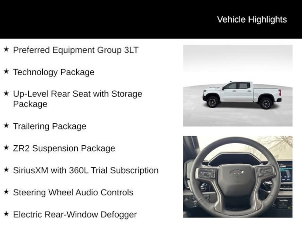 Beyond its impressive performance, this Silverado is packed with an array of premium features that elevate the driving experience. The sunroof lets in natural light and fresh air, while the technology package keeps you connected and entertained on the go. The trailering package and up-level rear seat with storage make this truck an excellent choice for those with active lifestyles, whether it's hauling gear, towing a trailer, or transporting the whole family.
