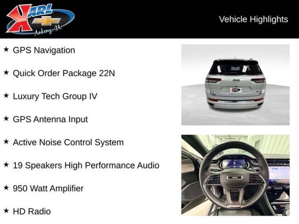 At Karl Chevrolet we want to help you find the best new or used car in Ankeny that suits your needs. When you buy a new car at Karl Chevrolet you know you're finding a vehicle you can rely on. We have a great selection of Platinum Quality Pre-Owned Vehicles. We also pride ourselves in creating a friendly atmosphere and a reliable Dealership that you can trust. Call us and our experts will be glad to help you! (515) 299-4300. *Equipment and options are generated by a 3rd party vendor, exact vehicle options may vary. Please see a salesperson for complete details and vehicle information.